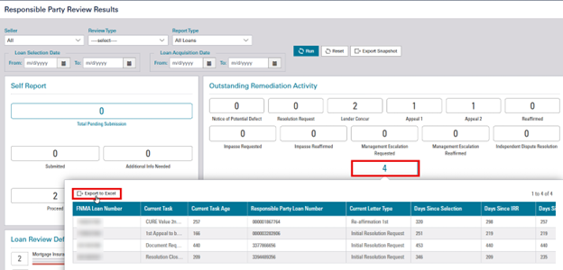 - Under Outstanding Remediation Activity, hover over the Total count to export the data to an Excel spreadsheet and click Export to Excel.
