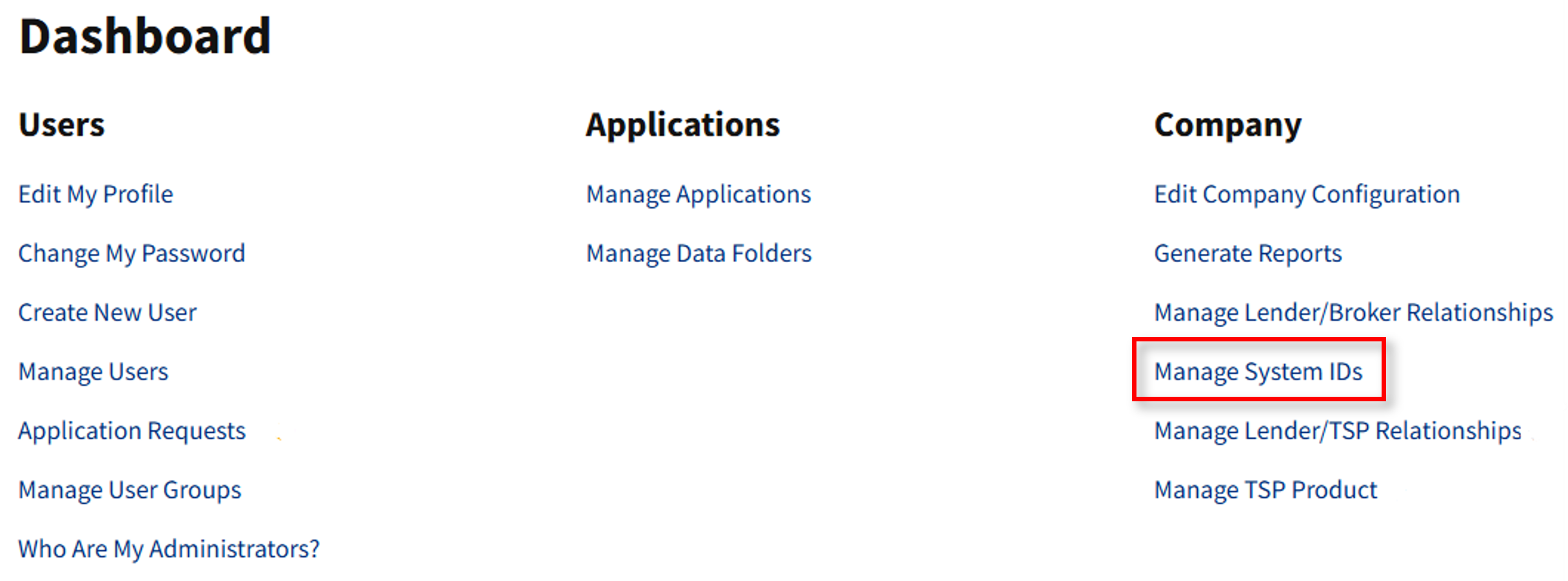 From the dashboard, select Manage System IDs.