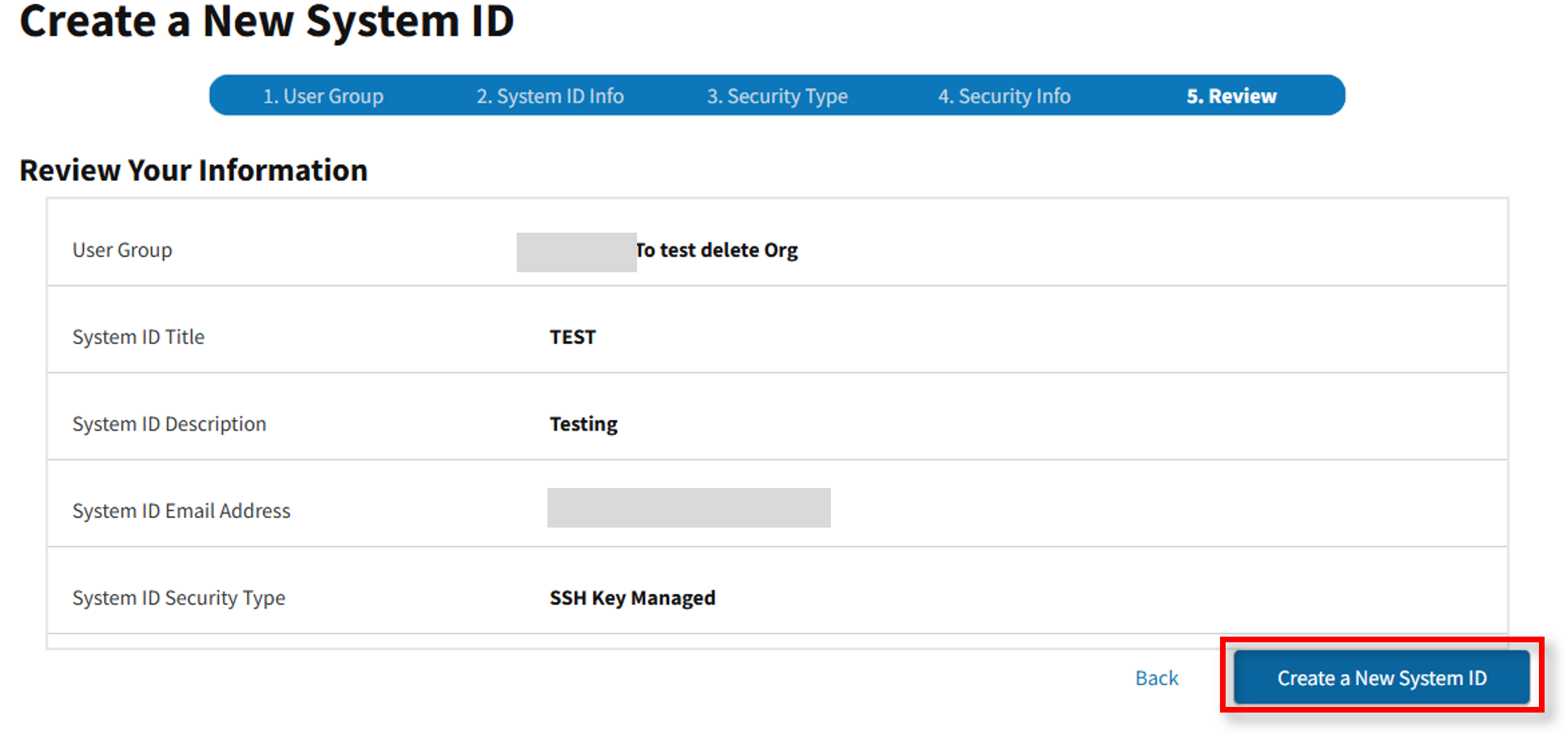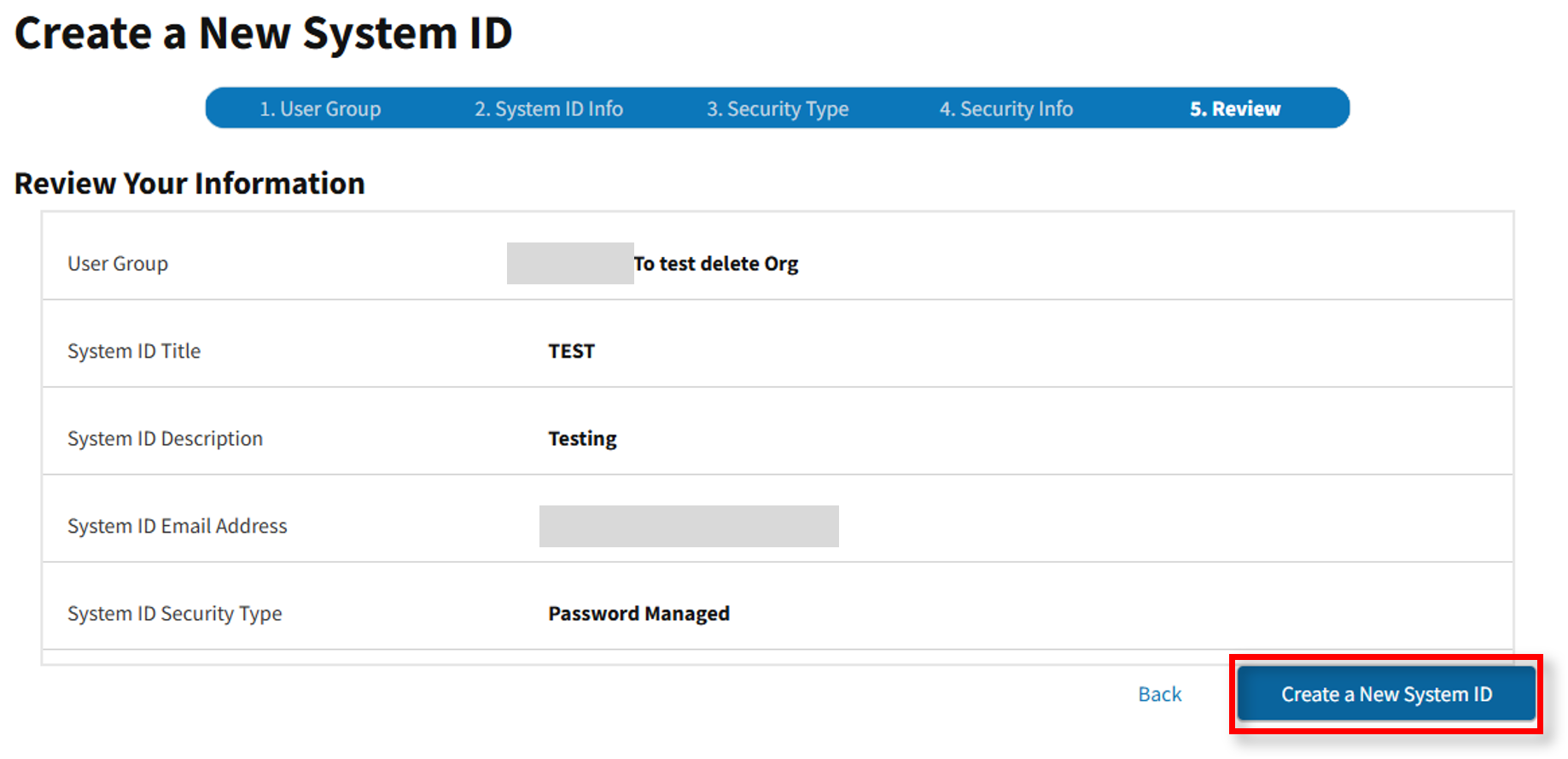 Review the new System ID information. If accurate, select Create a New System ID.