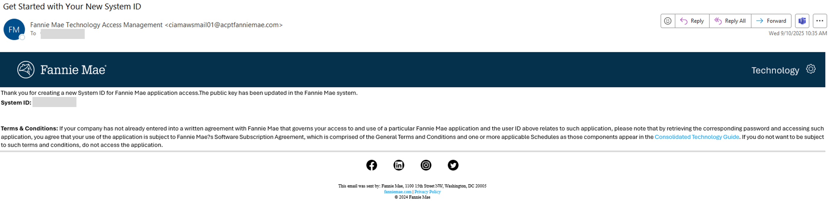 Once the new System ID is created successfully, a success message will appear and the requestor will receive a Get Started with Your New System ID email.