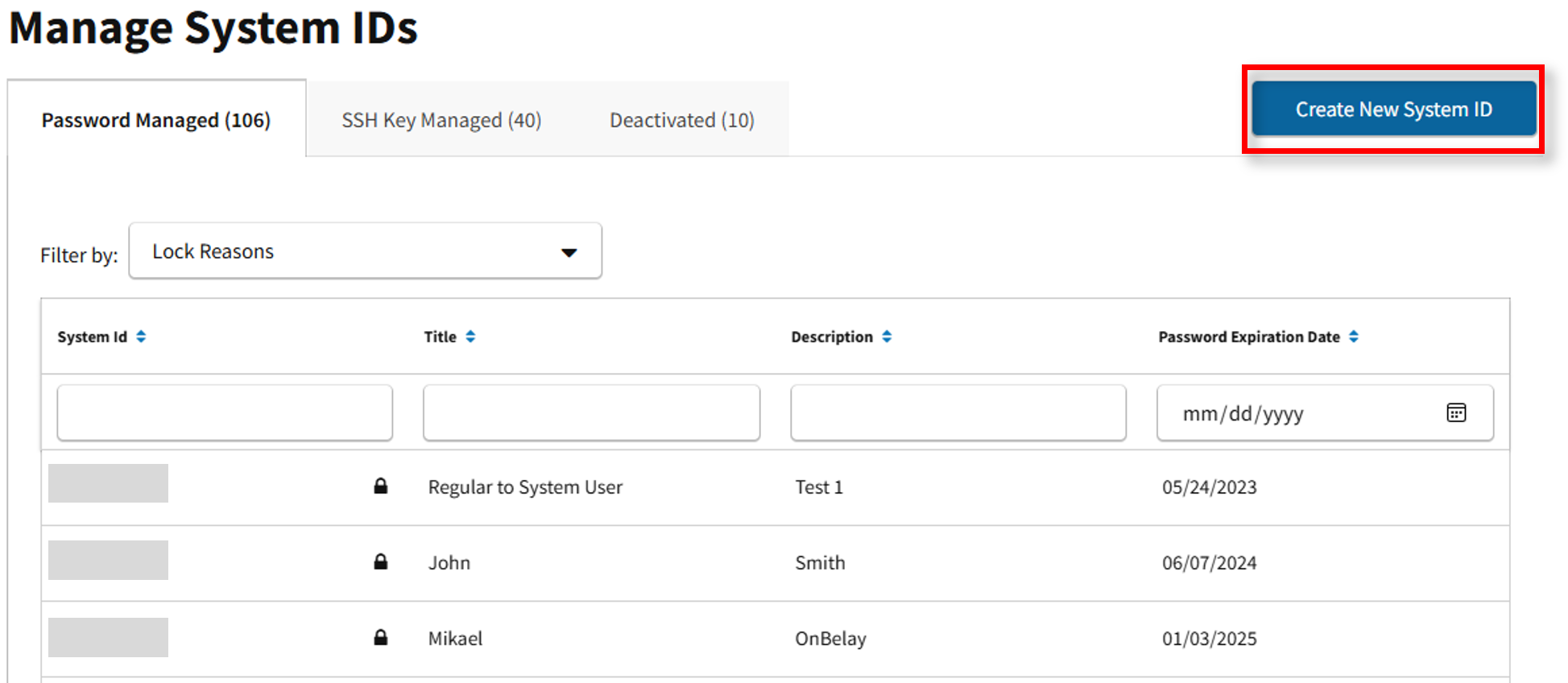 For System IDs managed by SSH Keys, follow the instructions below: