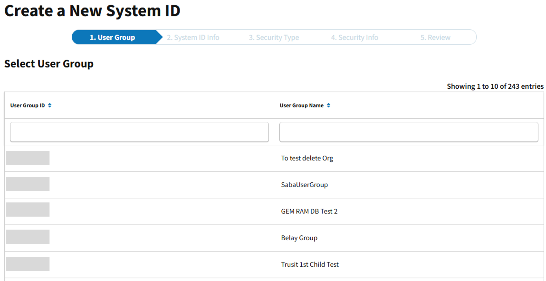 Once the Manage System IDs screen appears, select Create New System ID.