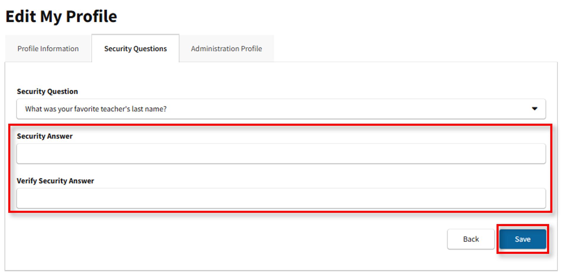 - Enter yourSecurity Answer andVerify Security Answer, and select Save. Remember, the Security Answer that you enter is case sensitive.