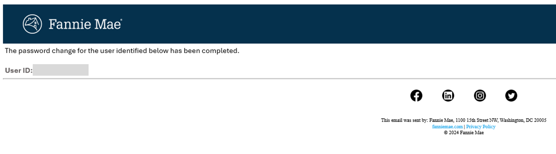 Once your administrator creates you as a new user, one of the emails you will receive is the Fannie Mae New User ID Confirmation Email. The email will contain a Create a password link that you must select.