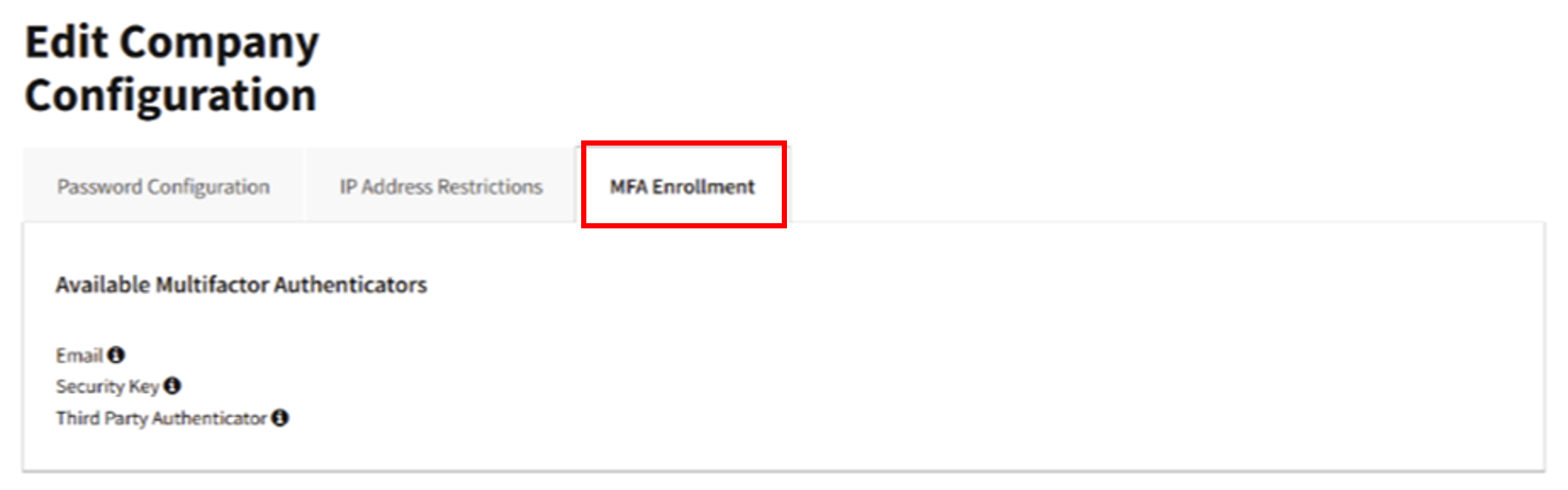 Note: User may hover over the information icon to obtain information about the Available Multifactor Authenticators.